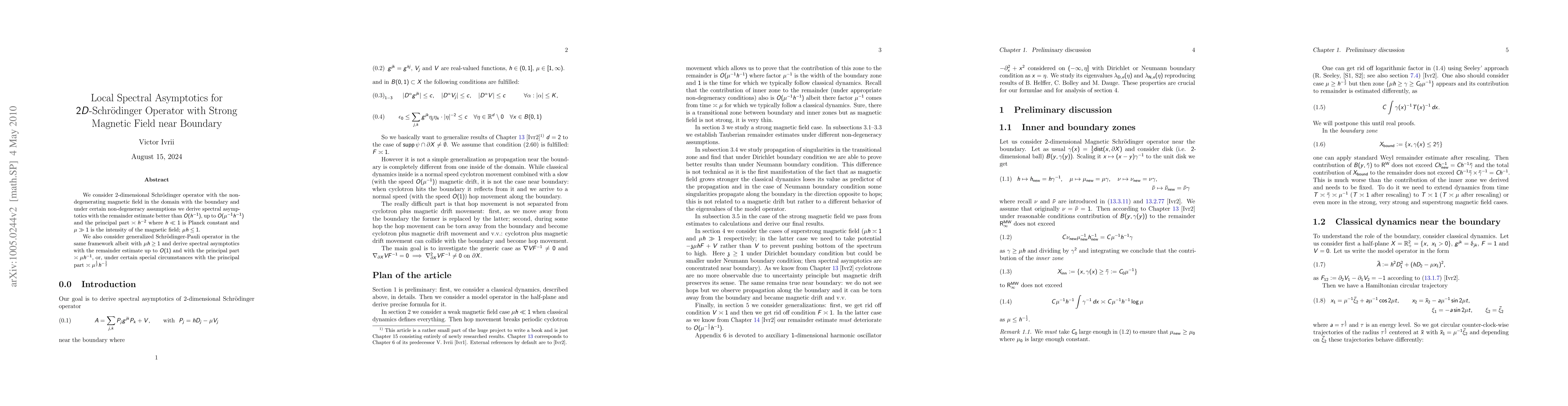 This paper derives spectral asymptotics for 2-dimensional Schrödinger operators with strong magnetic fields near boundaries, achieving better remainder estimates than $O(h^{-1})$, and explores generalized Schrödinger-Pauli operators under different magnetic field intensities.