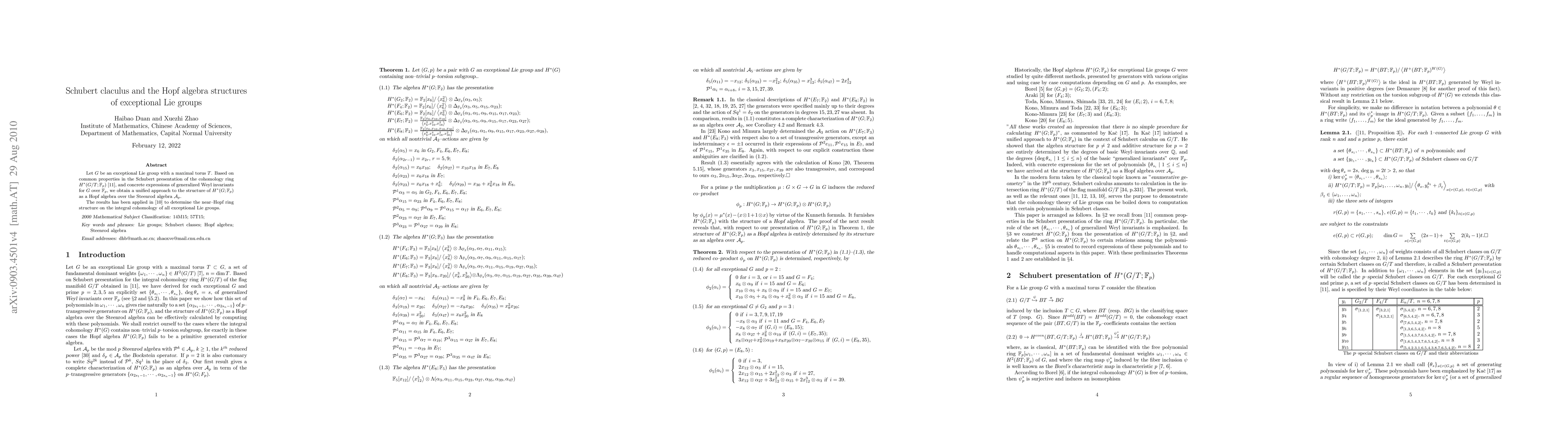 Researchers develop a unified approach to studying exceptional Lie groups using Schubert calculus and Hopf algebra structures, which has been applied to determine the near-Hopf ring structure on integral cohomology of these groups.