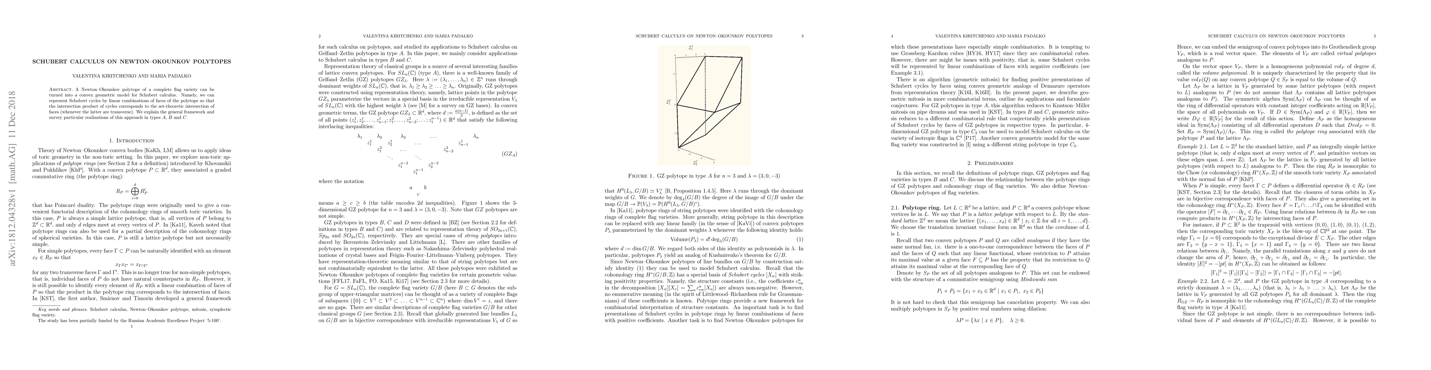 A Newton-Okounkov polytope of a complete flag variety can be turned into a convex geometric model for Schubert calculus. Namely, we can represent Schubert cycles by linear combinations of faces of the polytope so that the intersection product of cycles corresponds to the set-theoretic intersection of faces (whenever the latter are transverse). We explain the general framework and survey particular realizations of this approach in types A, B and C.