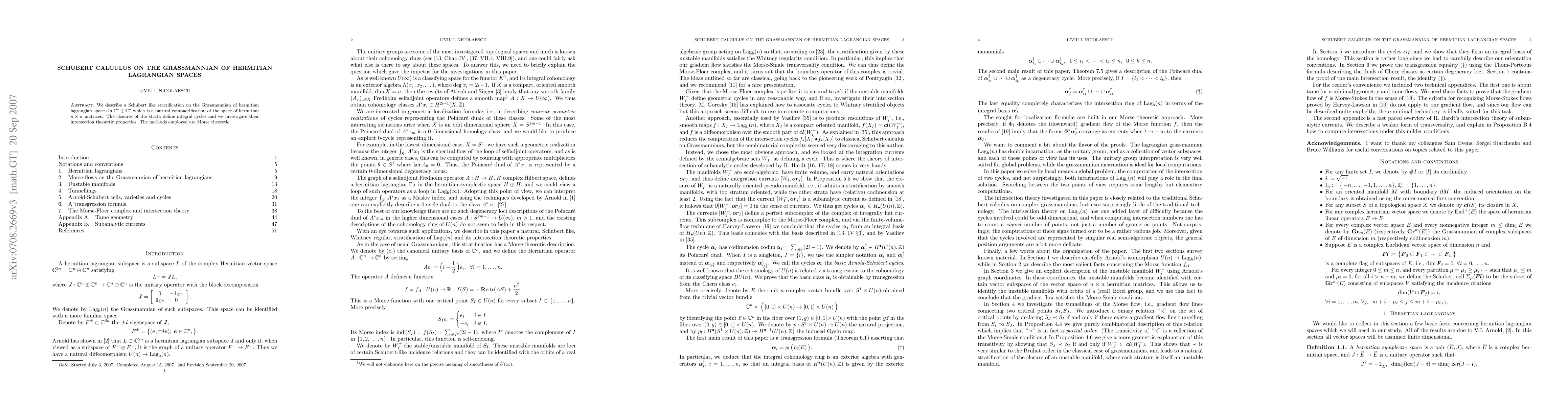 The grassmannian of hermitian lagrangian spaces in $\mathbb{C}^n\oplus \mathbb{C}^n$ is a natural compactification of the space of hermitian $n\times n$ matrices. We describe a Schubert-like, Whitney regular stratification on this space which has a Morse theoretic origin. We prove that these strata define closed subanalytic currents \`{a} la R. Hardt, generating the integral homology of this space, we investigate their intersection theoretic properties, and we prove certain odd (in K-theoretic sense) Thom-Porteous type theorems.