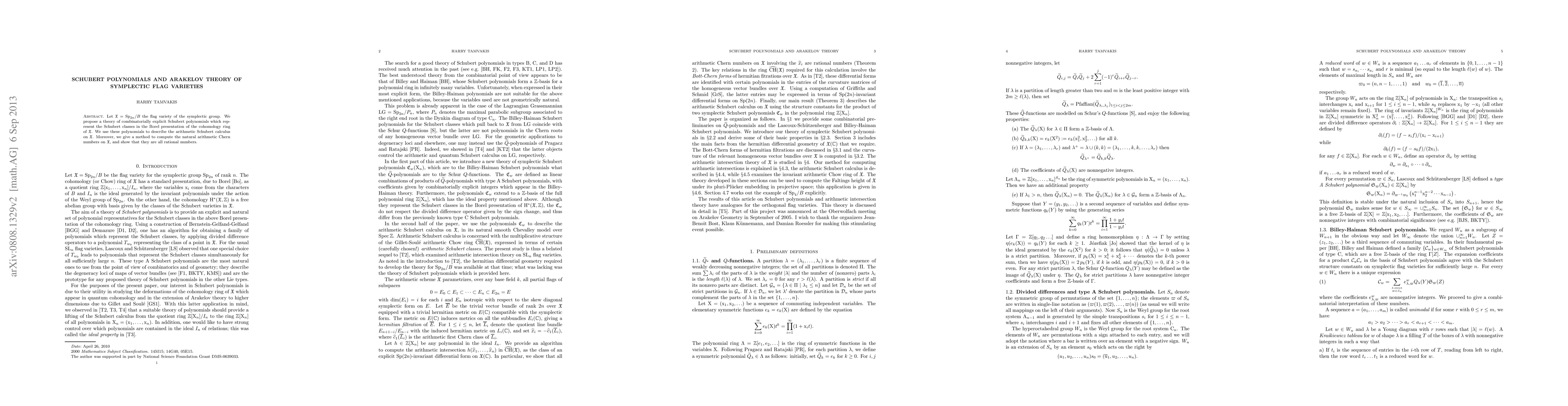 Let X be the flag variety of the symplectic group. We propose a theory of combinatorially explicit Schubert polynomials which represent the Schubert classes in the Borel presentation of the cohomology ring of X. We use these polynomials to describe the arithmetic Schubert calculus on X. Moreover, we give a method to compute the natural arithmetic Chern numbers on X, and show that they are all rational numbers.