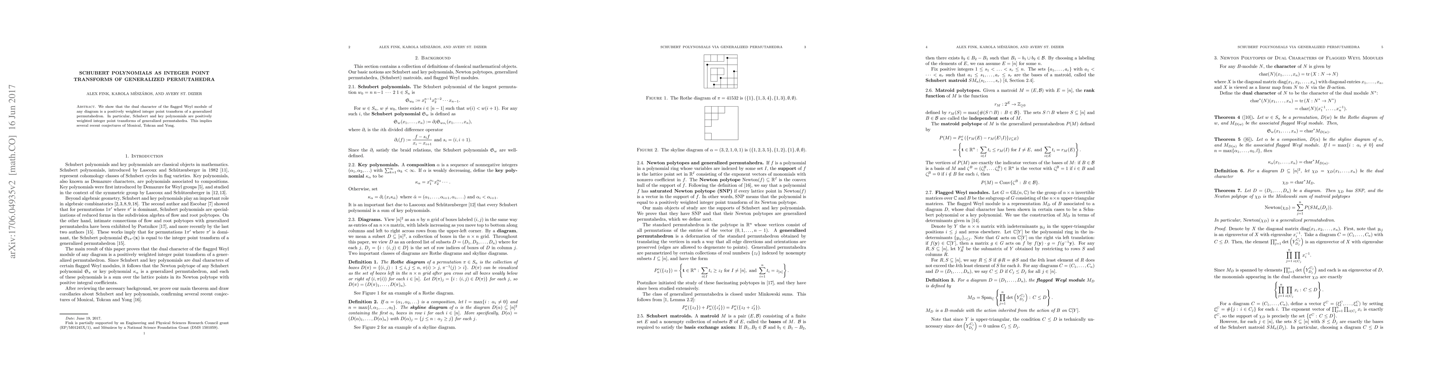 Summary: This paper demonstrates that Schubert and key polynomials can be expressed as positively weighted integer point transforms of generalized permutahedra, thereby proving the dual character of the flagged Weyl module and validating several conjectures by Monical, Tokcan, and Yong.