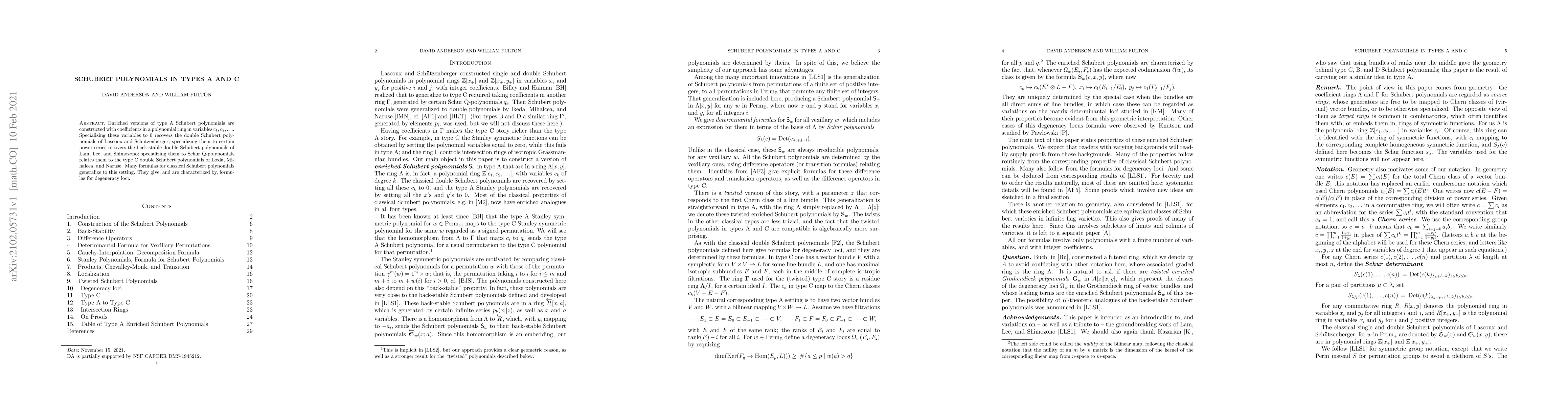 Enriched versions of type A Schubert polynomials are constructed with coefficients in a polynomial ring in variables $c_1, c_2, \ldots$. Specializing these variables to $0$ recovers the double Schubert polynomials of Lascoux and Sch\"utzenberger; specializing them to certain power series recovers the back-stable double Schubert polynomials of Lam, Lee, and Shimozono; specializing them to Schur Q-polynomials relates them to the type C double Schubert polynomials of Ikeda, Mihalcea, and Naruse. Many formulas for classical Schubert polynomials generalize to this setting. They give, and are characterized by, formulas for degeneracy loci.