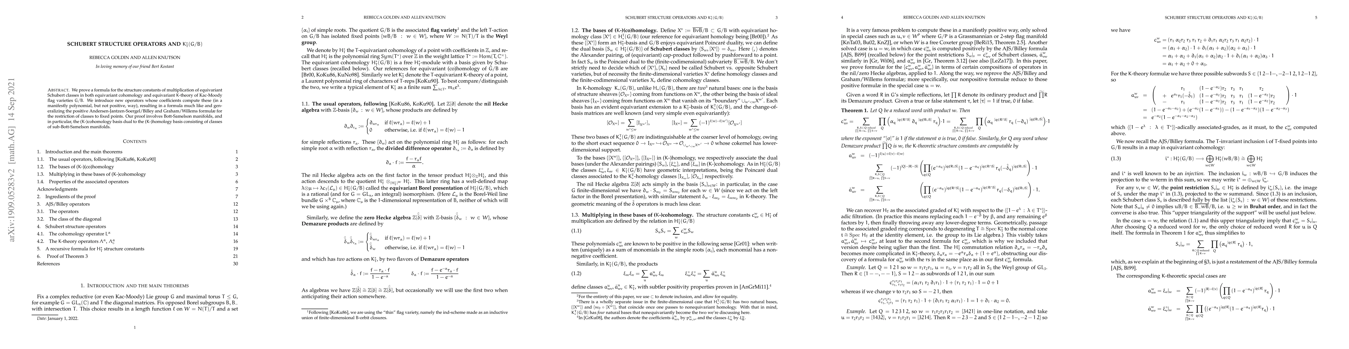 Researchers prove a formula for structure constants of multiplication of equivariant Schubert classes in Kac-Moody flag manifolds, using new operators to compute coefficients.