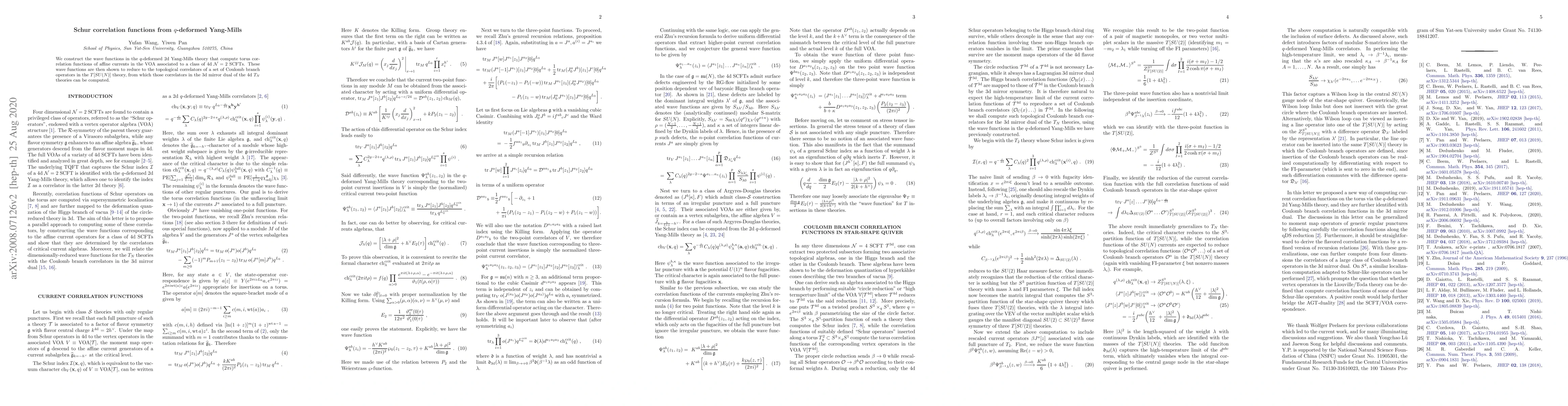 The paper constructs wave functions in q-deformed 2d Yang-Mills theory that yield torus correlation functions of affine currents, reducing to topological correlators of Coulomb branch operators in $T[SU(N)]$ theory, facilitating calculations for 3d mirror duals of 4d TN theories.