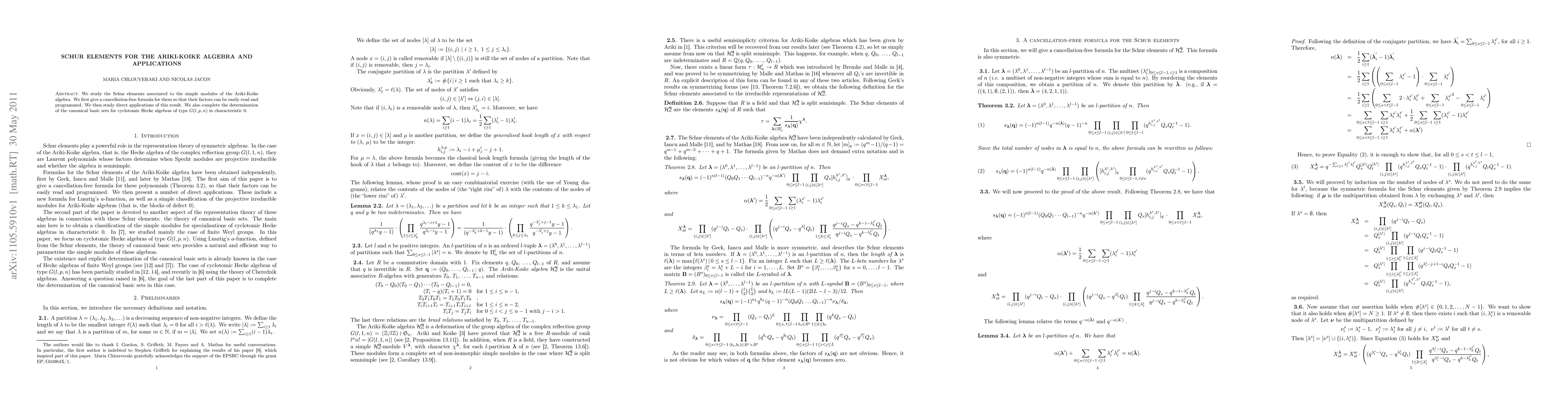 This paper presents a cancellation-free formula for Schur elements in the Ariki-Koike algebra, facilitating their computational use, and extends the determination of canonical basic sets for cyclotomic Hecke algebras in characteristic 0.