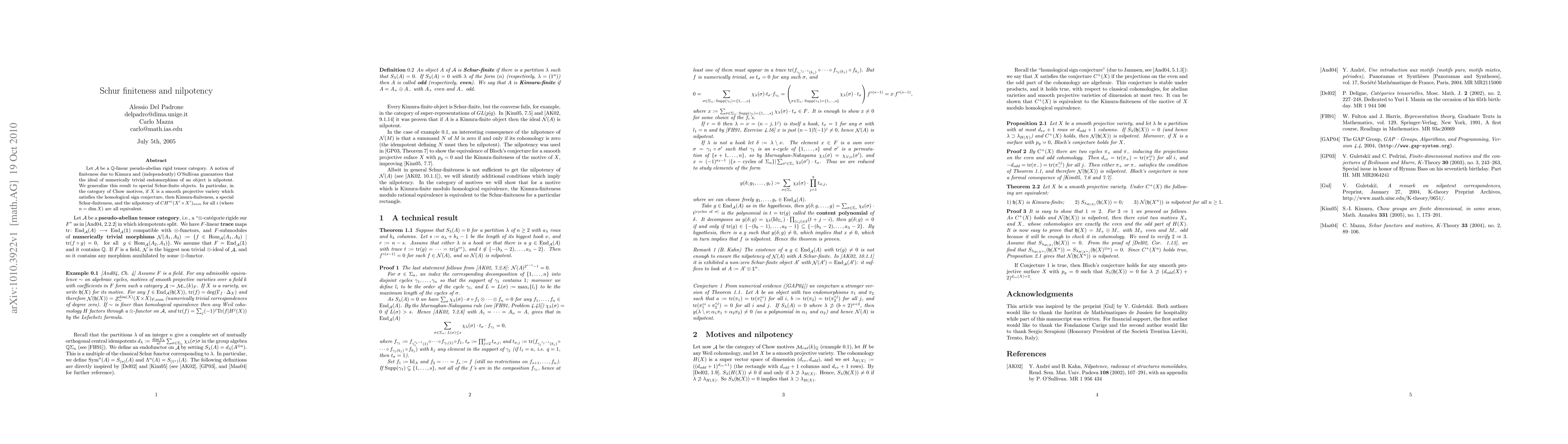 This paper generalizes Schur finiteness to special Schur-finite objects in Q-linear pseudo-abelian rigid tensor categories, proving that the ideal of numerically trivial endomorphisms is nilpotent. It specifically shows that in the category of Chow motives, Kimura-finiteness and nilpotency are equivalent for smooth projective varieties satisfying the homological sign conjecture.