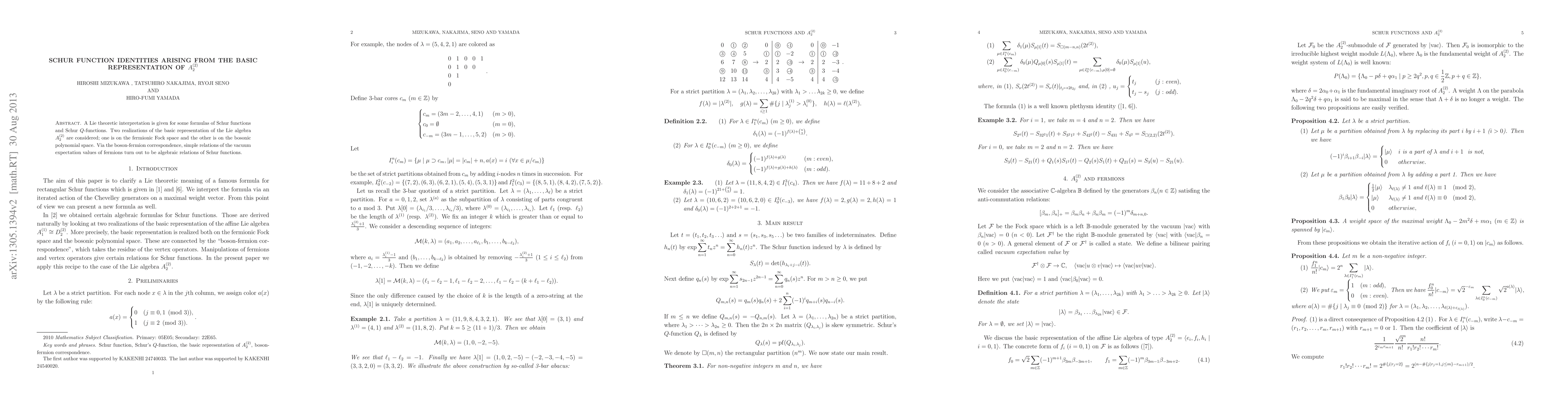 A Lie theoretic interpretation is given for some formulas of Schur functions and Schur $Q$-functions. Two realizations of the basic representation of the Lie algebra $A^{(2)}_2$ are considered; one is on the fermionic Fock space and the other is on the bosonic polynomial space. Via the boson-fermion correspondence, simple relations of the vacuum expectation values of fermions turn out to be algebraic relations of Schur functions.