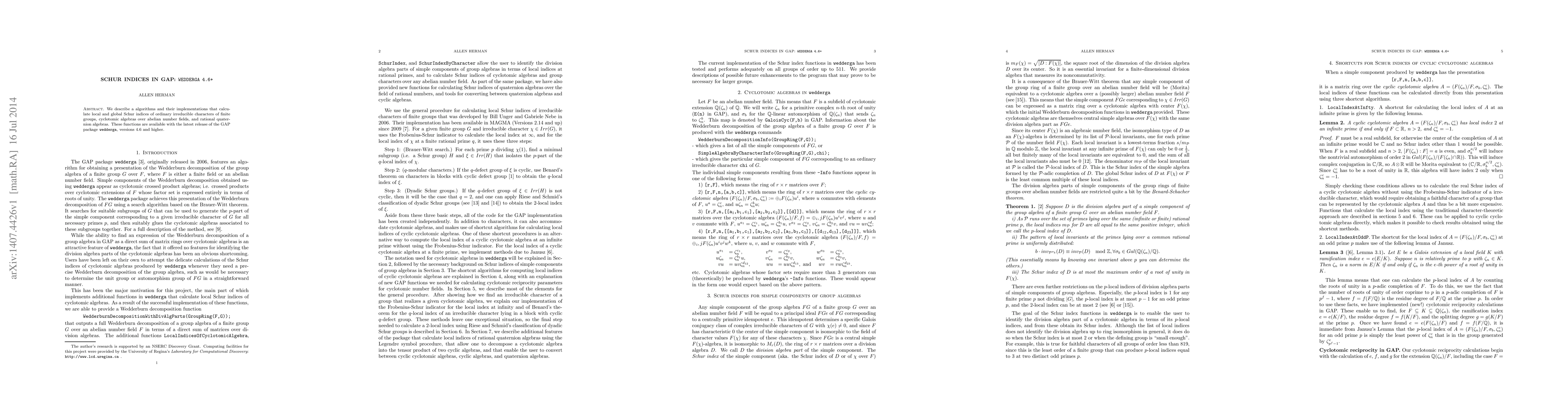 Researchers developed algorithms to calculate Schur indices in GAP version 4.6+, enabling easier computation of character properties for various algebraic structures.
