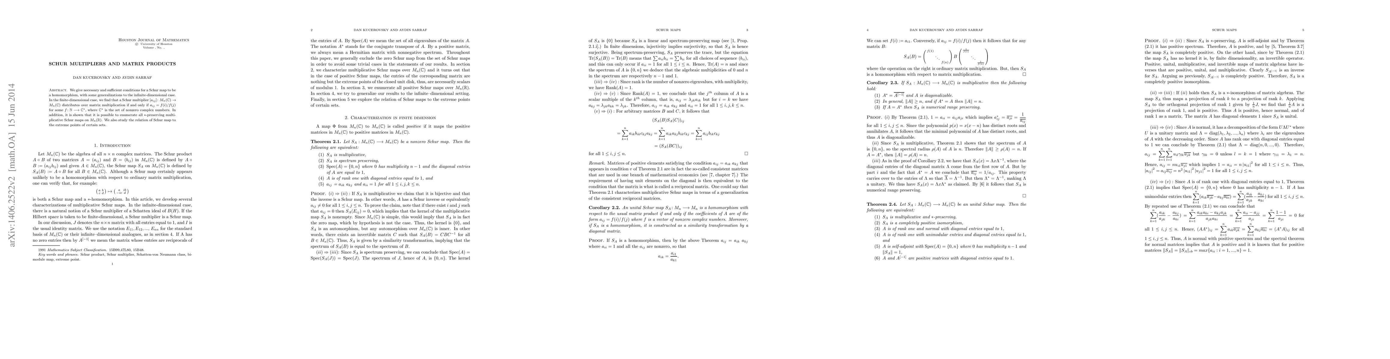 We give necessary and sufficient conditions for a Schur map to be a homomorphism, with some generalizations to the infinite-dimensional case. In the finite-dimensional case, we find that a Schur multiplier distributes over matrix multiplication if and only if the Schur matrix has a certain simple form.