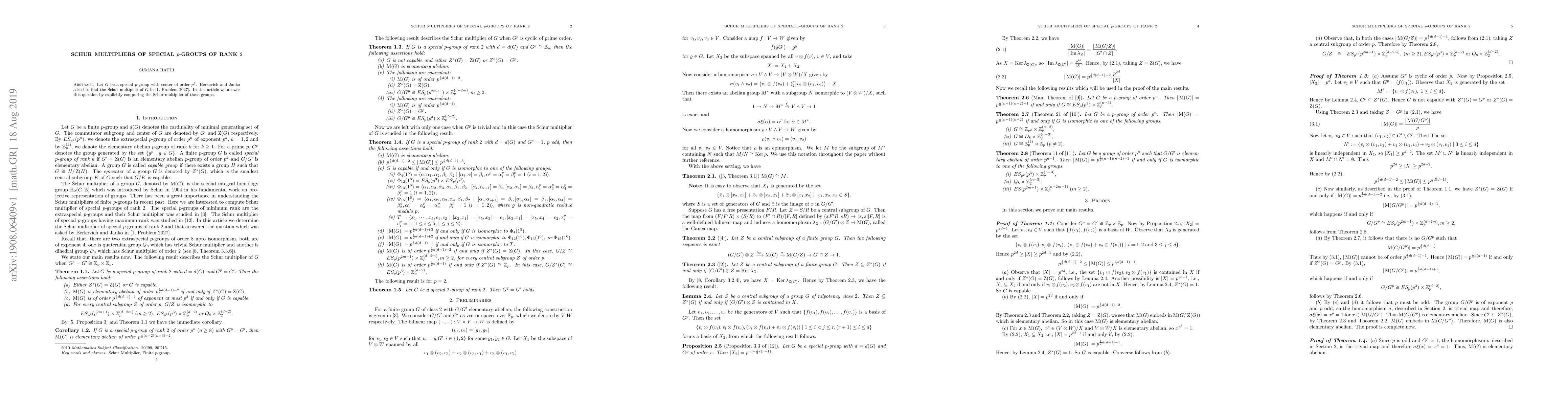 A group G is called special p-group of rank k if the commutator subgroup [G,G] and centre Z(G) are equal, which is elementary abelian p-group of rank k and G/[G,G] is also elementary abelian p-group. In this article we determine the Schur multiplier of special p-groups of rank 2 explicitly.
