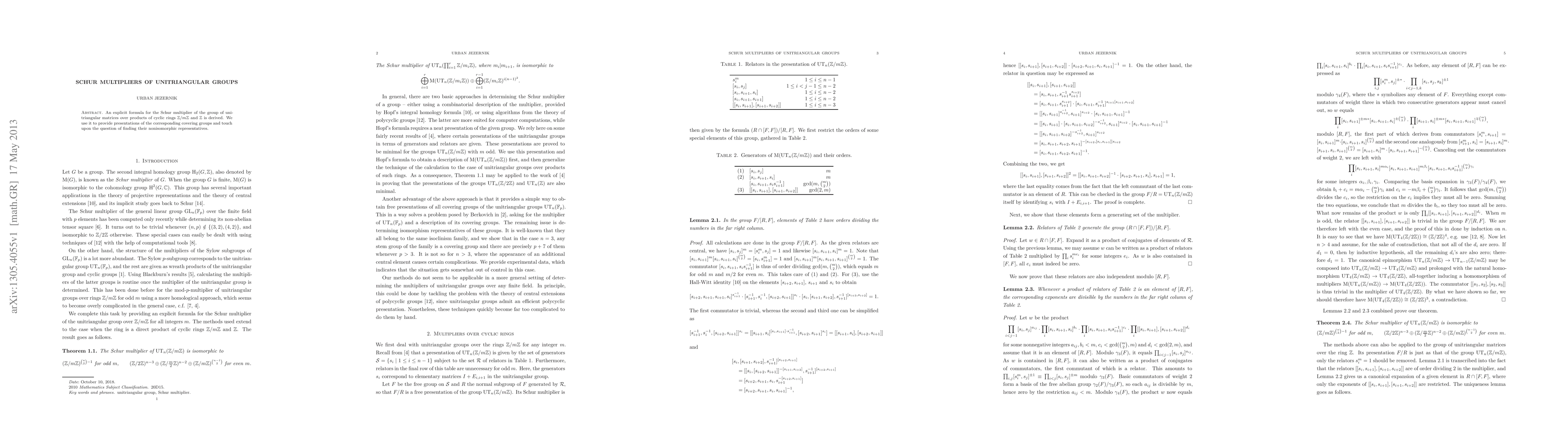 The paper provides an explicit formula for the Schur multiplier of unitriangular groups over products of cyclic rings, facilitating the study of covering groups and their nonisomorphic representatives.
