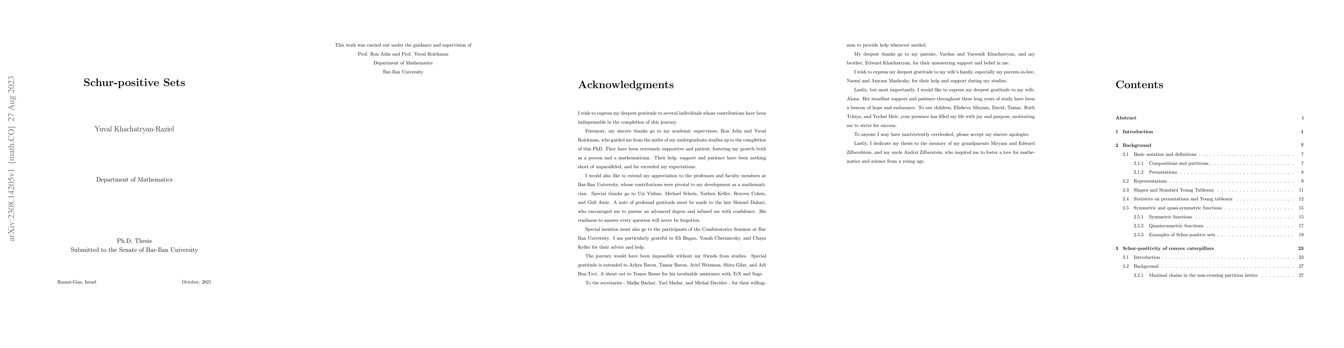 The work combines insights from graph theory, combinatorics, and representation theory to provide new perspectives on Schur-positive sets and their extensions.