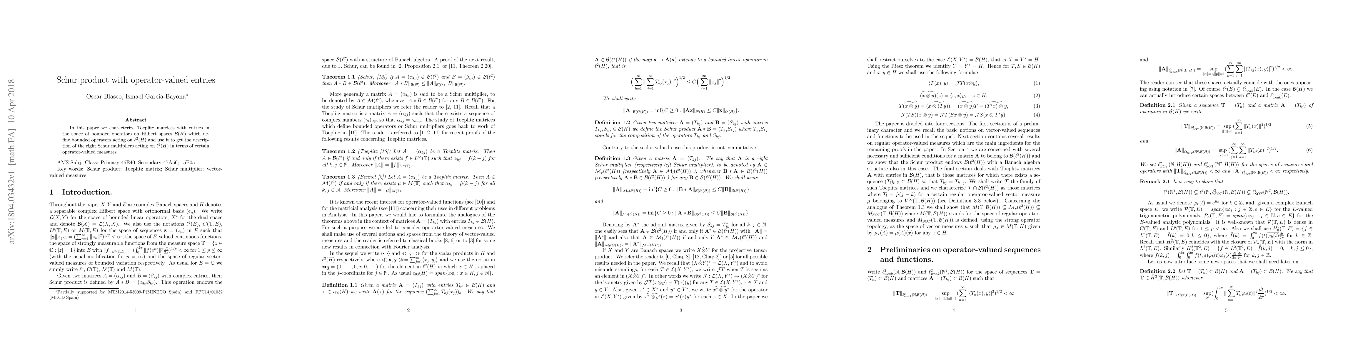 The paper establishes a connection between Toeplitz matrices with operator-valued entries and right Schur multipliers, providing a framework for analyzing bounded operators on ℓ^2(H) using operator-valued measures.