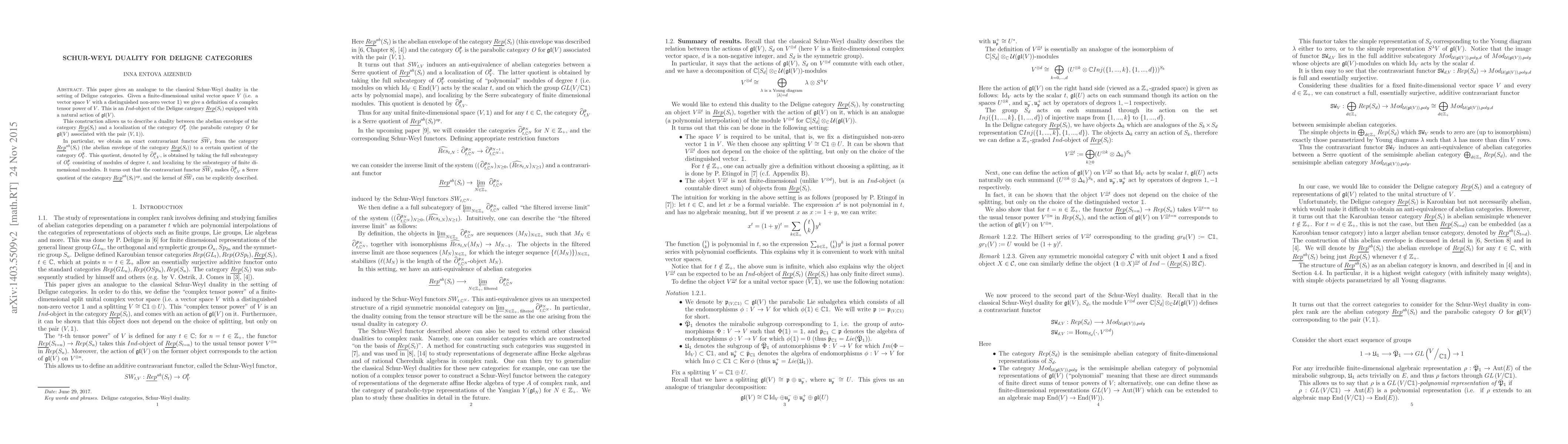 This paper gives an analogue to the classical Schur-Weyl duality in the setting of Deligne categories. Given a finite-dimensional unital vector space V (i.e. a vector space V with a distinguished non-zero vector 1), we give a definition of a complex tensor power of V. This is an Ind-object of the Deligne category Rep(S_t), equipped with a natural action of gl(V). This construction allows us to describe a duality between the abelian envelope of the category Rep(S_t) and a localization of the parabolic category O for gl(V) associated with the pair (V, 1). In particular, we obtain an exact contravariant functor SW from the category Rep^{ab}(S_t) (the abelian envelope of the category Rep(S_t)) to a certain quotient \hat{O} of the parabolic category O. This quotient is obtained by taking the full subcategory consisting of modules of degree t, and localizing by the subcategory of finite dimensional modules. It turns out that the contravariant functor SW makes \hat{O} a Serre quotient of the category Rep^{ab}(S_t)^{op}, and the kernel of SW can be explicitly described.