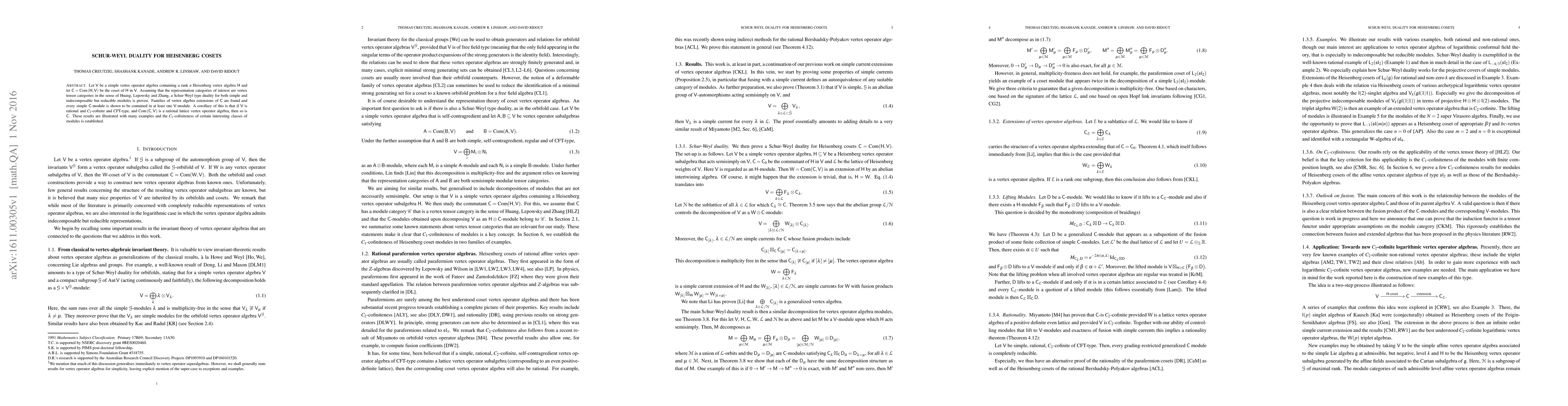 Let $V$ be a simple vertex operator algebra containing a rank $n$ Heisenberg vertex algebra $H$ and let $C=\text{Com}\left( {H}, {V}\right)$ be the coset of ${H}$ in ${V}$. Assuming that the representation categories of interest are vertex tensor categories in the sense of Huang, Lepowsky and Zhang, a Schur-Weyl type duality for both simple and indecomposable but reducible modules is proven. Families of vertex algebra extensions of ${C}$ are found and every simple ${C}$-module is shown to be contained in at least one ${V}$-module. A corollary of this is that if ${V}$ is rational and $C_2$-cofinite and CFT-type, and $\text{Com}\left( {C}, {V}\right)$ is a rational lattice vertex operator algebra, then so is ${C}$. These results are illustrated with many examples and the $C_1$-cofiniteness of certain interesting classes of modules is established.