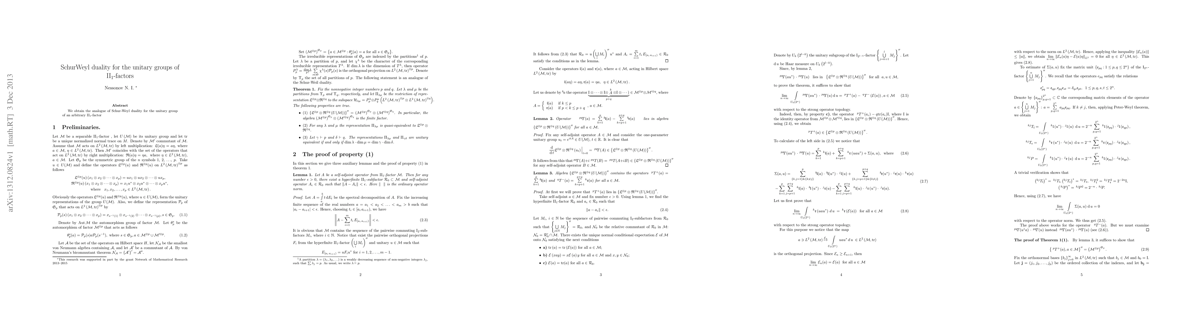Summary: This paper establishes Schur-Weyl duality for the unitary groups of $II_1$-factors, providing an analogue to classical Schur-Weyl duality in the context of operator algebras. The results extend the understanding of representation theory in the realm of von Neumann algebras.