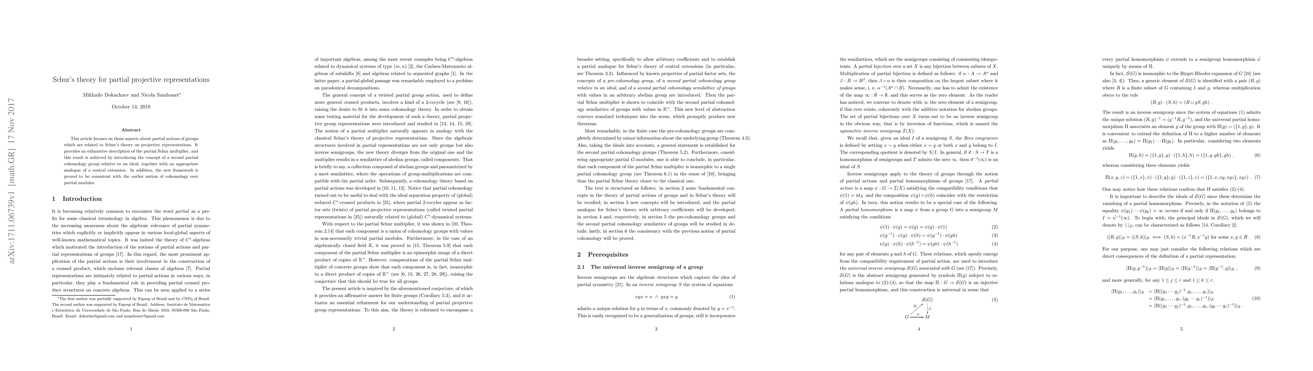 This article focuses on those aspects about partial actions of groups which are related to Schur's theory on projective representations. It provides an exhaustive description of the partial Schur multiplier, and this result is achieved by introducing the concept of a second partial cohomology group relative to an ideal, together with an appropriate analogue of a central extension. In addition, the new framework is proved to be consistent with the earlier notion of cohomology over partial modules.
