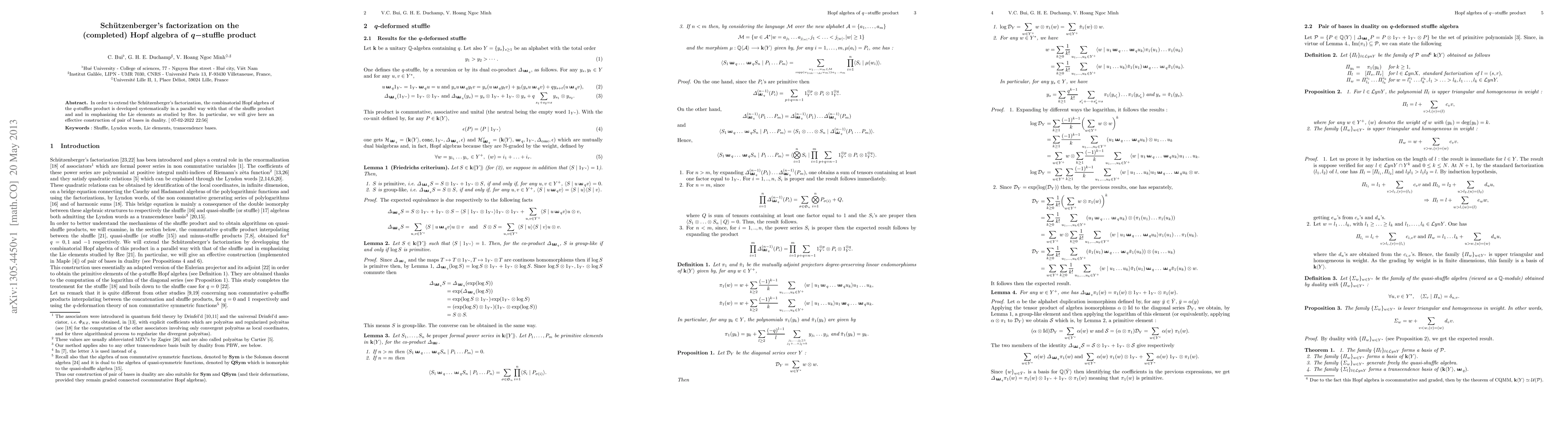 In order to extend the Sch\"utzenberger's factorization, the combinatorial Hopf algebra of the $q$-stuffles product is developed systematically in a parallel way with that of the shuffle product and and in emphasizing the Lie elements as studied by Ree. In particular, we will give here an effective construction of pair of bases in duality.