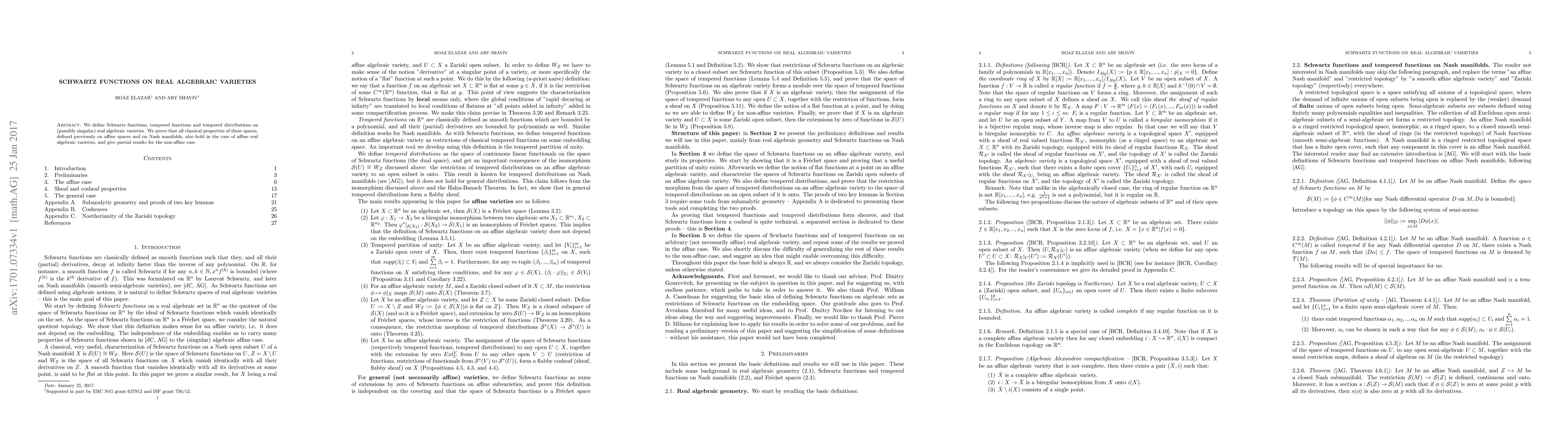 Summary: This paper introduces Schwartz functions, tempered functions, and tempered distributions on real algebraic varieties, proving that classical properties from affine spaces and Nash manifolds extend to these varieties. Partial results are also provided for non-affine real algebraic varieties.