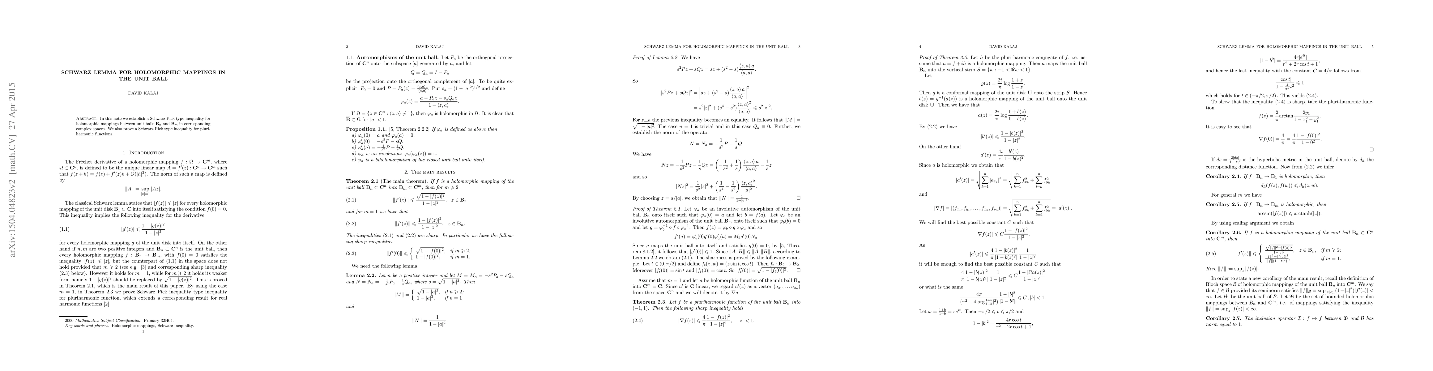 Summary: This paper presents a Schwarz lemma extension for holomorphic mappings between unit balls in complex spaces, establishing a new inequality that parallels the classical Schwarz lemma.