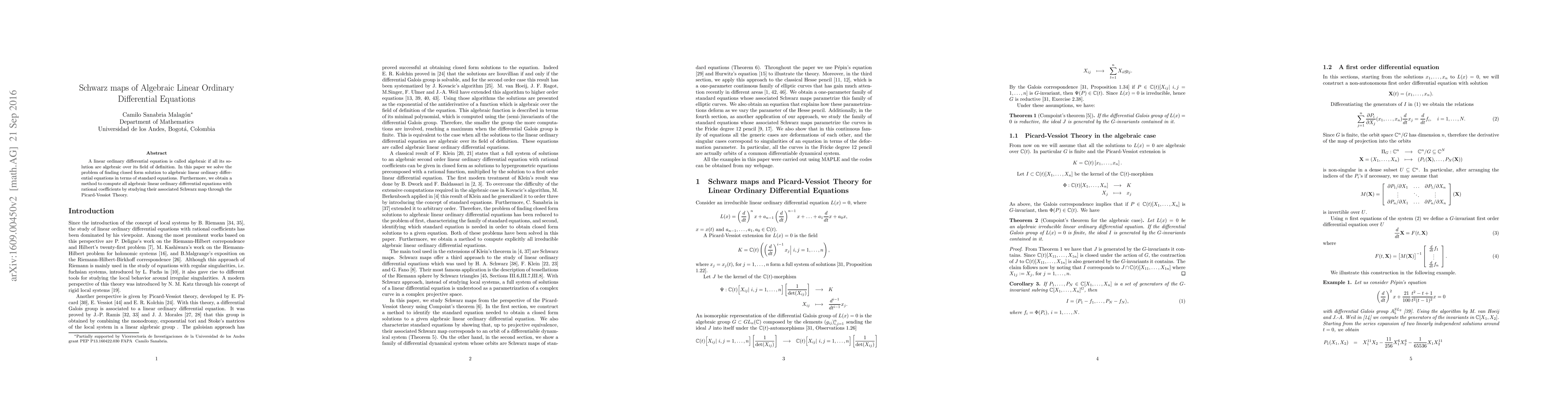 The paper introduces a novel approach to identifying and characterizing standard algebraic linear ordinary differential equations through Schwarz maps and Picard-Vessiot Theory, linking them to dynamical systems.