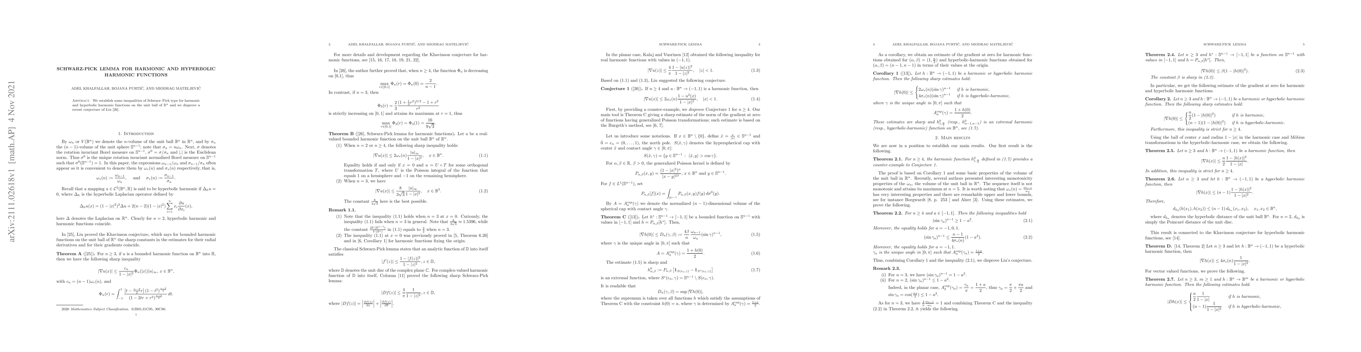 Summary: This paper establishes Schwarz-Pick type inequalities for harmonic and hyperbolic harmonic functions on the unit ball and refutes a conjecture by Liu regarding the Schwarz-Pick Lemma for harmonic functions.