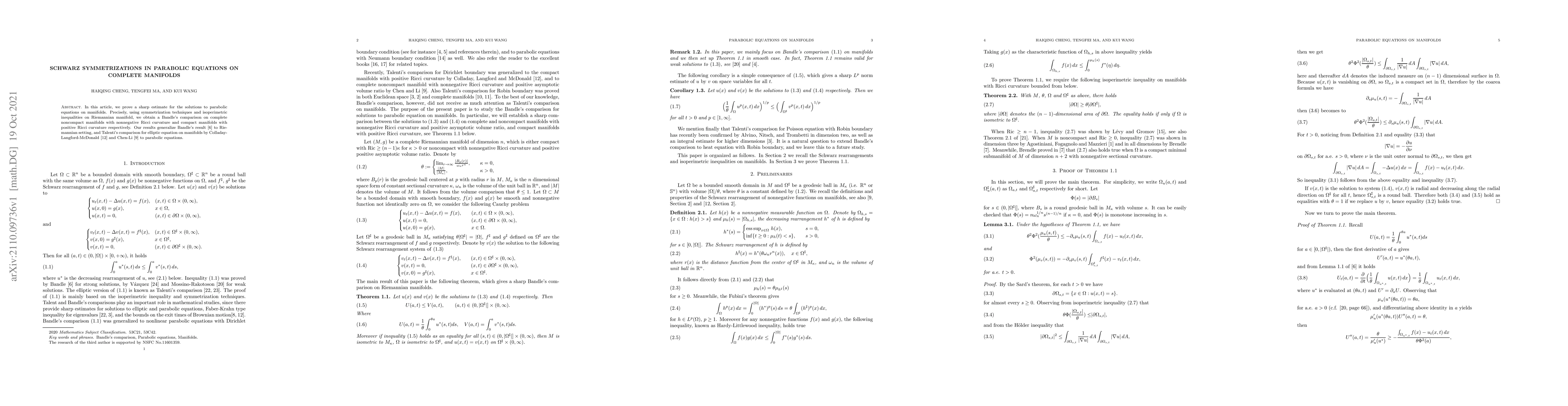 In this article, we prove a sharp estimate for the solutions to parabolic equations on manifolds. Precisely, using symmetrization techniques and isoperimetric inequalities on Riemannian manifold, we obtain a Bandle's comparison on complete noncompact manifolds with nonnegative Ricci curvature and compact manifolds with positive Ricci curvature respectively. Our results generalize Bandle's result [6] to Riemannian setting, and Talenti's comparison for elliptic equation on manifolds by Colladay-Langford-McDonald [12] and Chen-Li [9] to parabolic equations.