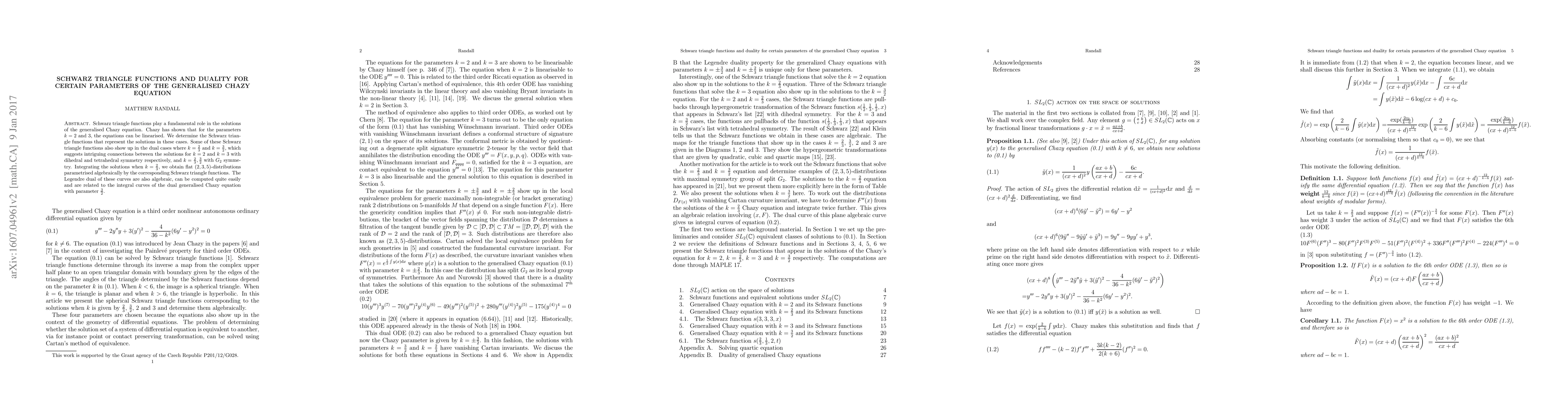 Researchers investigate solutions to a mathematical equation using Schwarz triangle functions, revealing connections between different cases of the equation and symmetries.