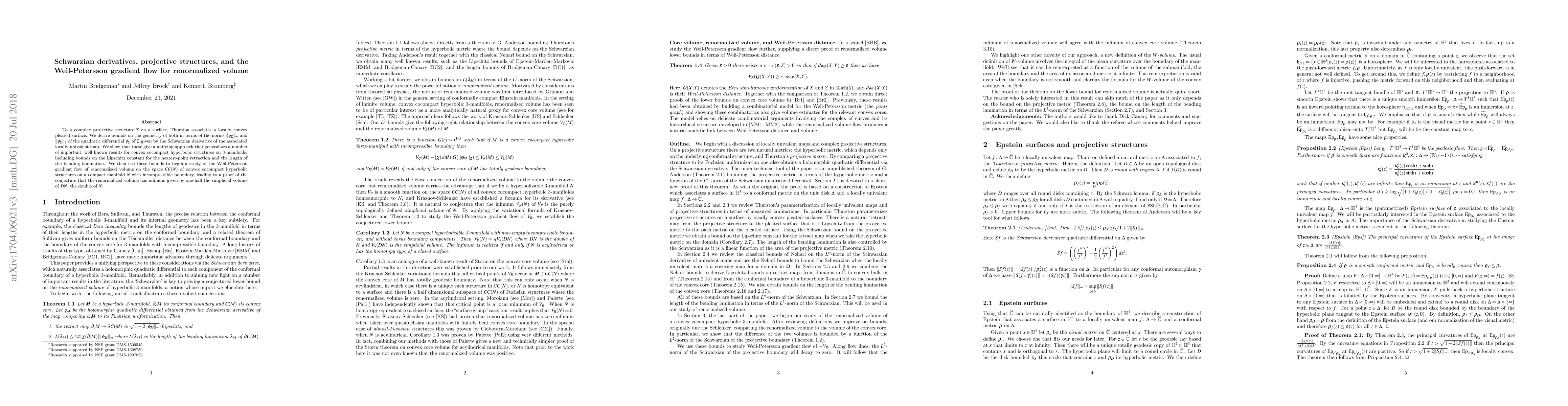 To a complex projective structure $\Sigma$ on a surface, Thurston associates a locally convex pleated surface. We derive bounds on the geometry of both in terms of the norms $\|\phi_\Sigma\|_\infty$ and $\|\phi_\Sigma\|_2$ of the quadratic differential $\phi_\Sigma$ of $\Sigma$ given by the Schwarzian derivative of the associated locally univalent map. We show that these give a unifying approach that generalizes a number of important, well known results for convex cocompact hyperbolic structures on 3-manifolds, including bounds on the Lipschitz constant for the nearest-point retraction and the length of the bending lamination. We then use these bounds to begin a study of the Weil-Petersson gradient flow of renormalized volume on the space $CC(N)$ of convex cocompact hyperbolic structures on a compact manifold $N$ with incompressible boundary, leading to a proof of the conjecture that the renormalized volume has infimum given by one-half the simplicial volume of $DN$, the double of $N$.