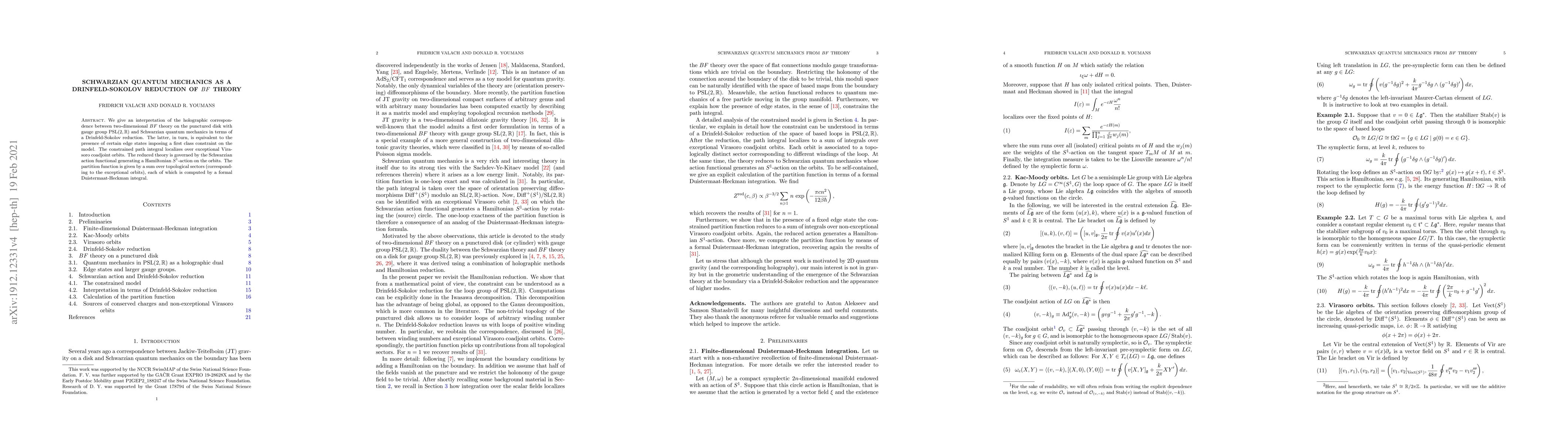 Researchers interpret the connection between 2D BF theory and Schwarzian quantum mechanics as a reduction to a Hamiltonian action functional, governed by an S^1-action on exceptional Virasoro coadjoint orbits.