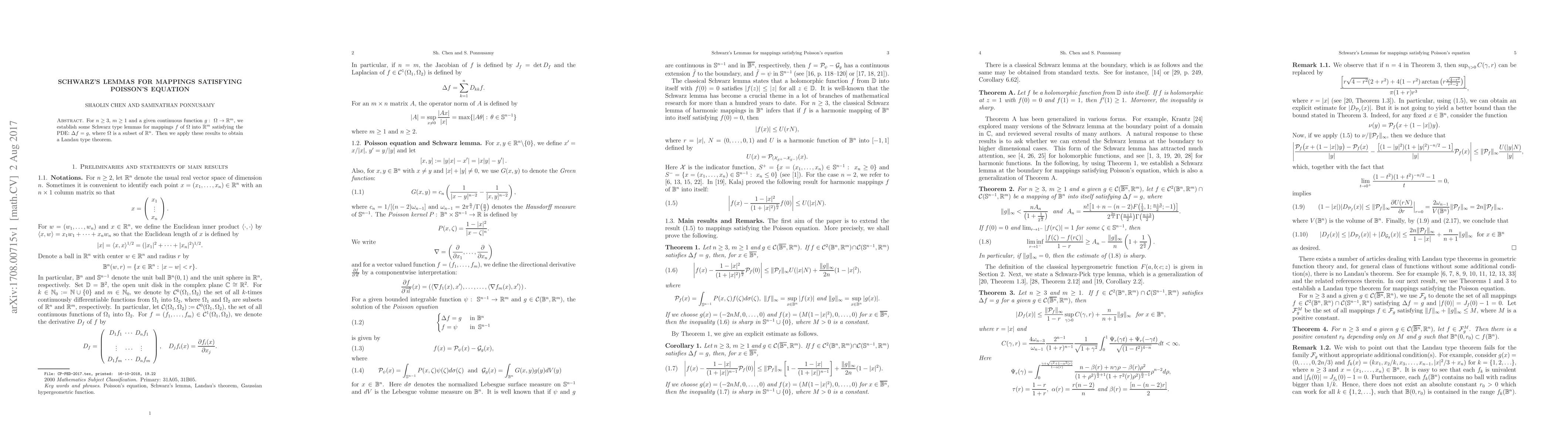 For $n\geq3$, $m\geq1$ and a given continuous function $g:~\Omega\rightarrow\mathbb{R}^{m}$, we establish some Schwarz type lemmas for mappings $f$ of $\Omega$ into $\mathbb{R}^{m}$ satisfying the PDE: $\Delta f=g$, where $\Omega$ is a subset of $\mathbb{R}^{n}$. Then we apply these results to obtain a Landau type theorem.