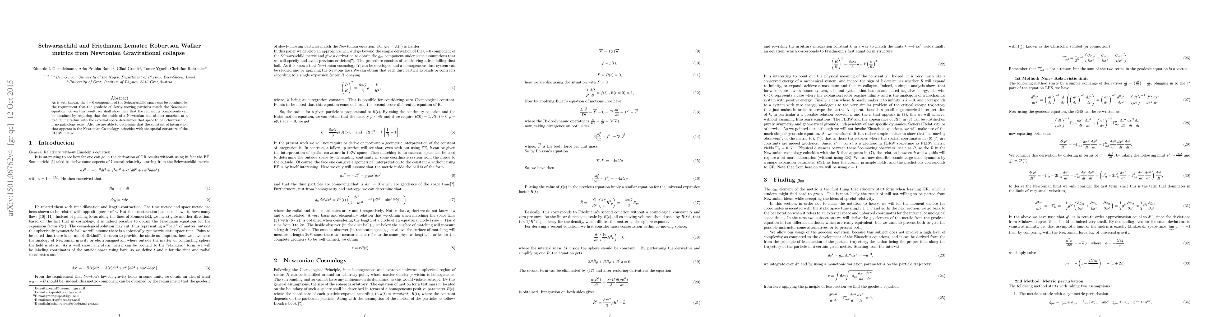This paper demonstrates how the Schwarzschild metric can be derived from Newtonian gravitational collapse, showing that the interior of a Newtonian ball of dust matches the Schwarzschild exterior at a free-falling radius. It also establishes that the constant of integration in Newtonian cosmology corresponds to the spatial curvature in the Friedmann-Lemaître-Robertson-Walker (FLRW) metric.