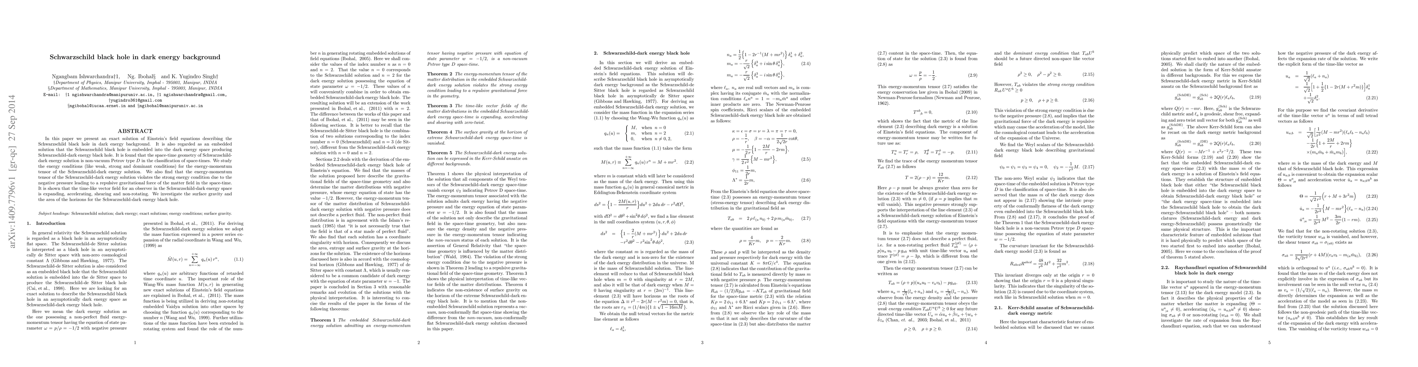 This paper presents an exact solution for a Schwarzschild black hole in a dark energy background, classifying it as a non-vacuum Petrov type D spacetime. It reveals that the solution violates the strong energy condition due to negative pressure, resulting in repulsive gravitational forces.