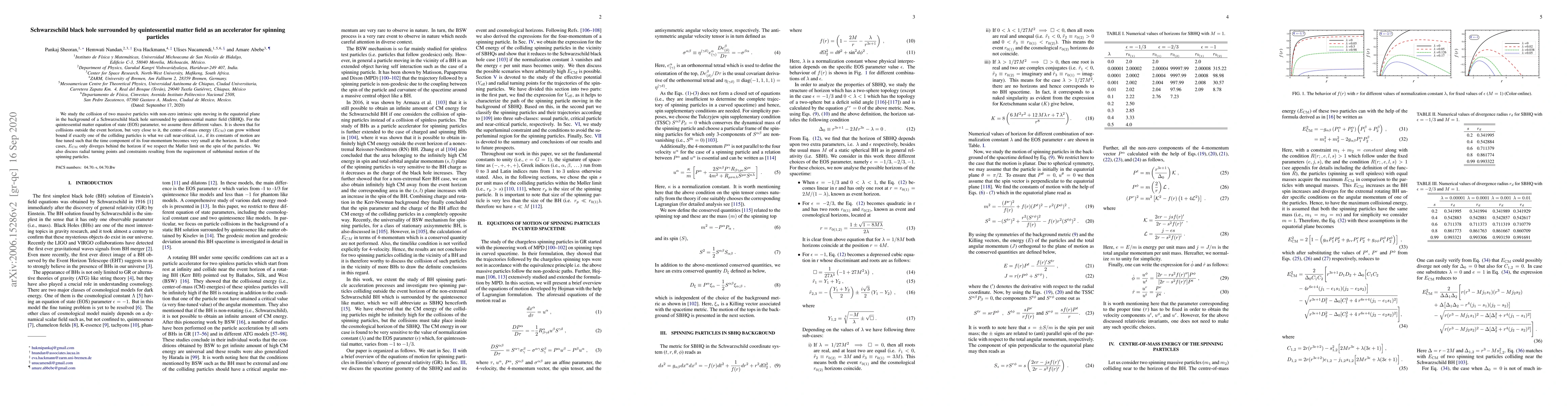 A study finds that a Schwarzschild black hole surrounded by a quintessential matter field can accelerate spinning particles to infinite energy if one particle is near-critical, allowing for unbounded center-of-mass energy outside the event horizon.