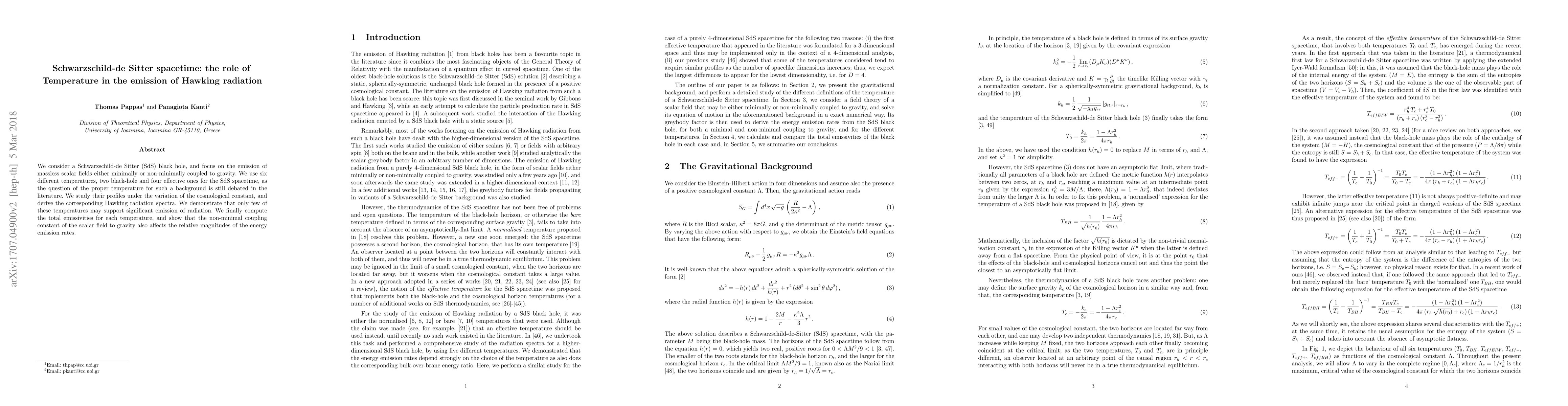 The paper investigates the emission of Hawking radiation from Schwarzschild-de Sitter black holes under various temperatures, showing that only specific temperatures lead to significant radiation emission. The study finds that non-minimal coupling of scalar fields to gravity influences the energy emission rates.