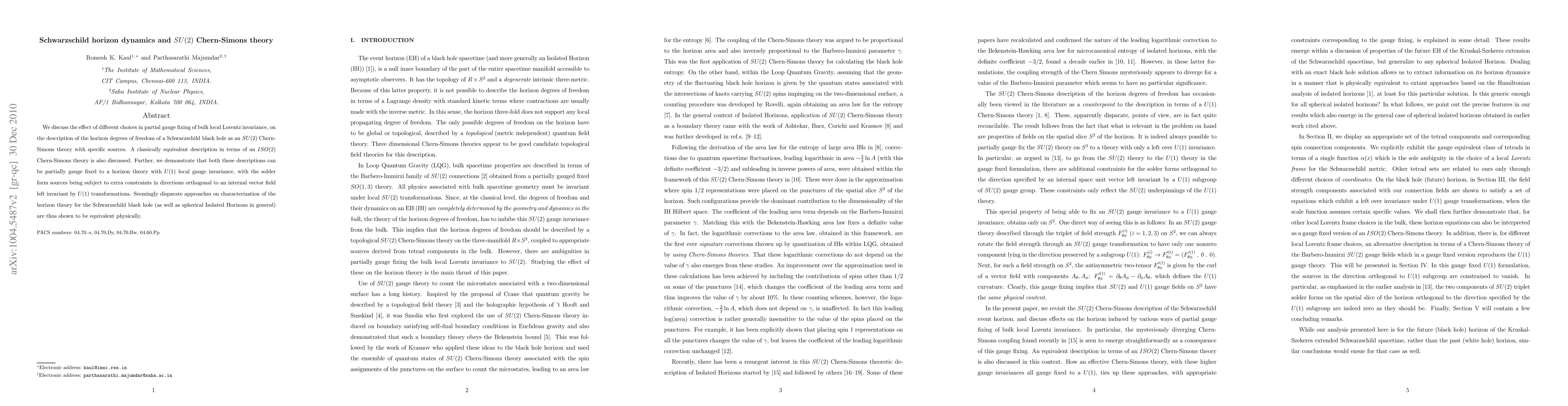 Researchers show that two different mathematical approaches to describing a black hole's horizon are equivalent in terms of physical behavior, using SU(2) Chern-Simons theory and an ISO(2) Chern-Simons theory.