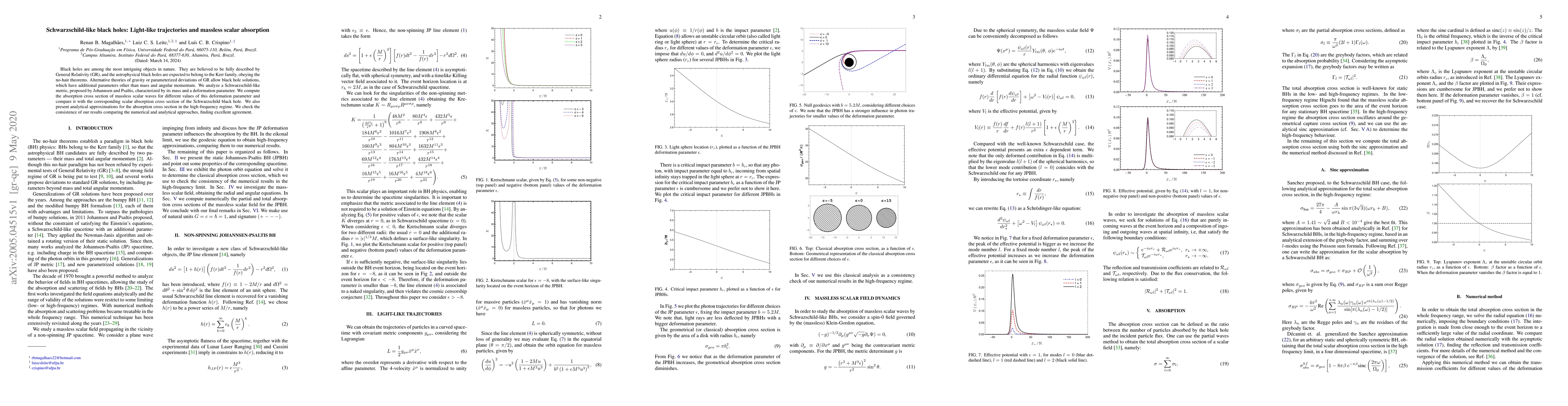 This paper investigates the absorption of massless scalar waves by Schwarzschild-like black holes, characterized by mass and a deformation parameter, and compares their absorption cross sections to those of Schwarzschild black holes, providing analytical approximations for high-frequency regimes and confirming consistency between numerical and analytical results.