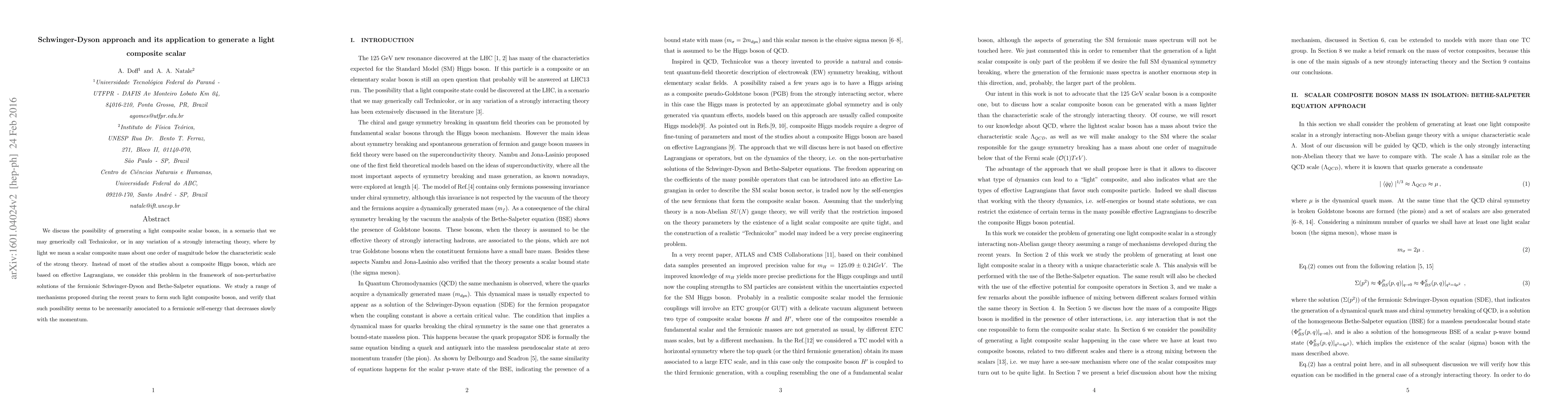 We discuss the possibility of generating a light composite scalar boson, in a scenario that we may generically call Technicolor, or in any variation of a strongly interacting theory, where by light we mean a scalar composite mass about one order of magnitude below the characteristic scale of the strong theory. Instead of most of the studies about a composite Higgs boson, which are based on effective Lagrangians, we consider this problem in the framework of non-perturbative solutions of the fermionic Schwinger-Dyson and Bethe-Salpeter equations. We study a range of mechanisms proposed during the recent years to form such light composite boson, and verify that such possibility seems to be necessarily associated to a fermionic self-energy that decreases slowly with the momentum.