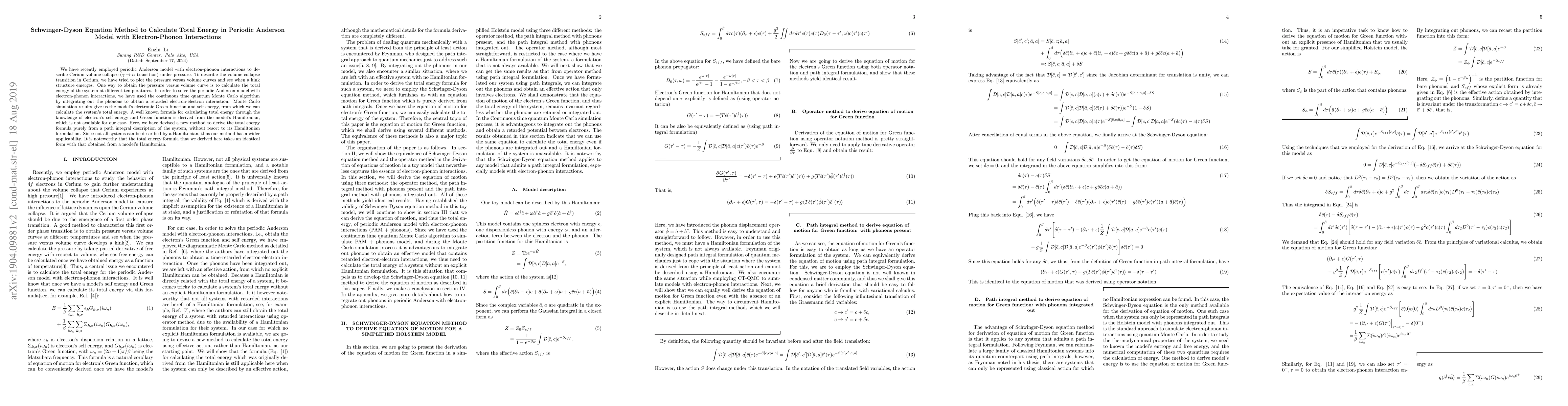 This paper introduces a novel method using the Schwinger-Dyson equation to calculate the total energy in the periodic Anderson model with electron-phonon interactions, applicable when a Hamiltonian formulation is not available. The method is demonstrated to accurately describe the Cerium volume collapse under pressure.