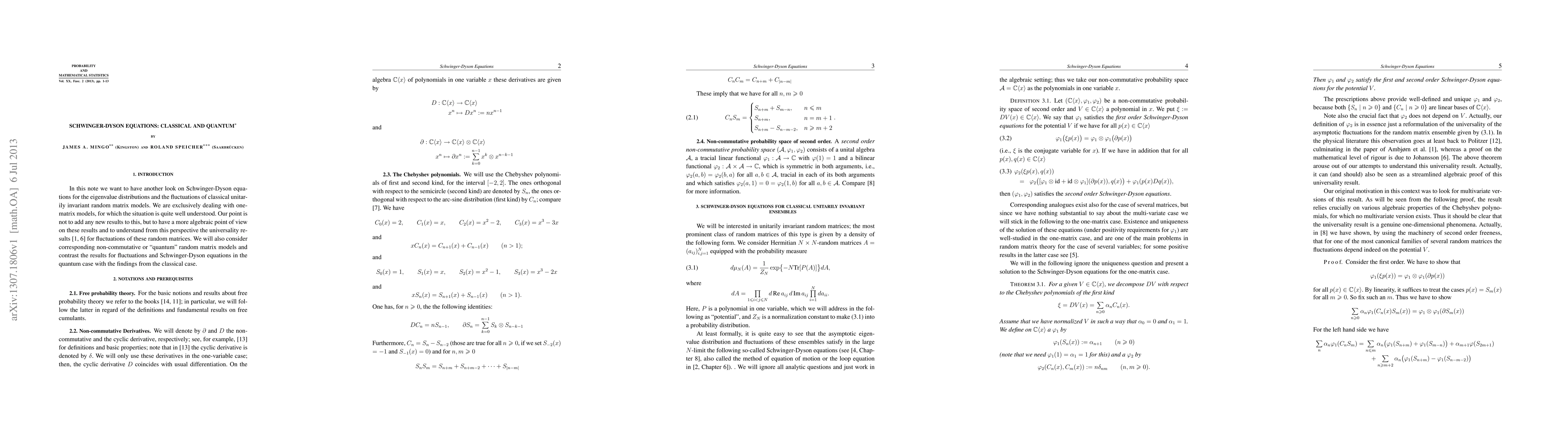 The paper provides a novel algebraic approach to Schwinger-Dyson equations, offering a streamlined proof of universality results for random matrix ensembles.