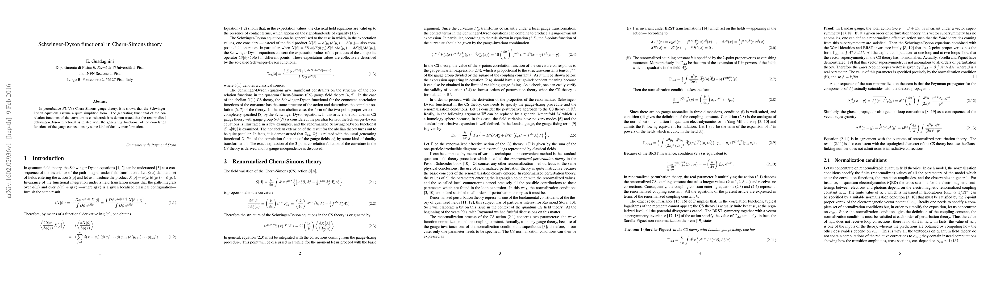 This paper demonstrates that in perturbative SU(N) Chern-Simons gauge theory, the Schwinger-Dyson equations simplify significantly. It reveals a duality between the renormalized Schwinger-Dyson functional and the generating functional of the correlation functions of gauge connections.