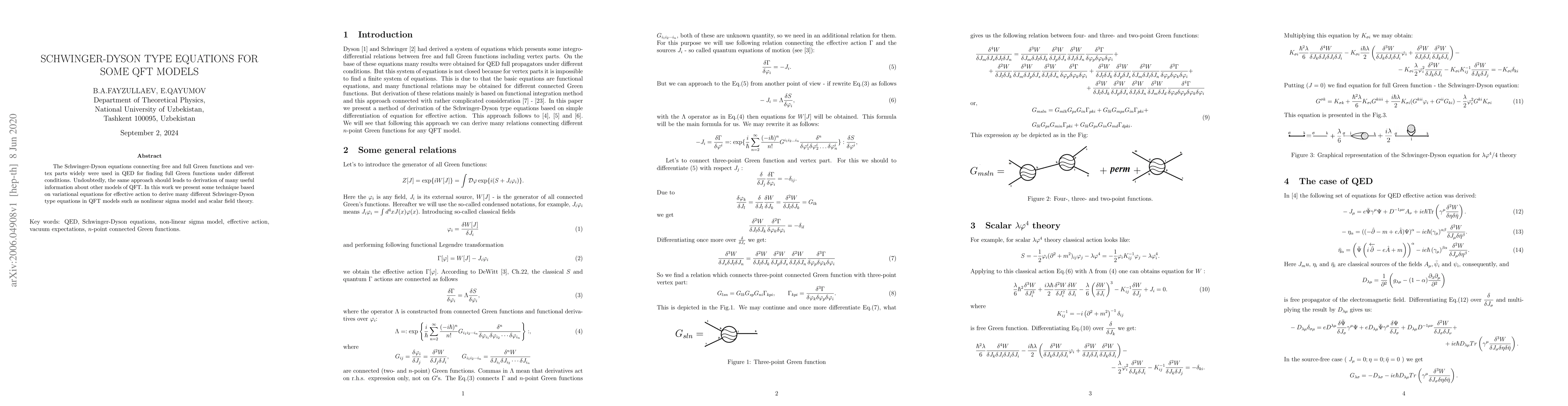This paper develops a technique based on variational equations for the effective action to derive Schwinger-Dyson type equations in various Quantum Field Theory (QFT) models, including the nonlinear sigma model and scalar field theory. The approach aims to extract useful information from these equations, similar to its successful application in Quantum Electrodynamics (QED).