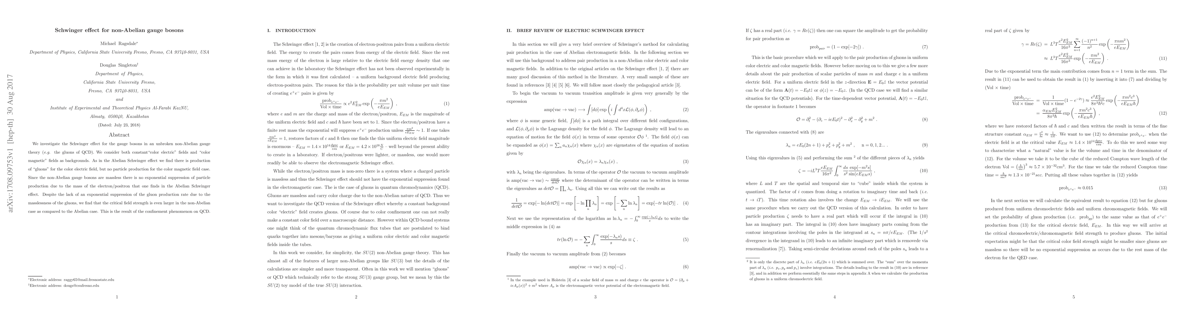 This paper explores the Schwinger effect for non-Abelian gauge bosons, specifically gluons in QCD, under constant color electric and magnetic fields. It finds gluon production in electric fields but not in magnetic fields, with a larger critical field strength for gluons due to confinement, despite their masslessness.