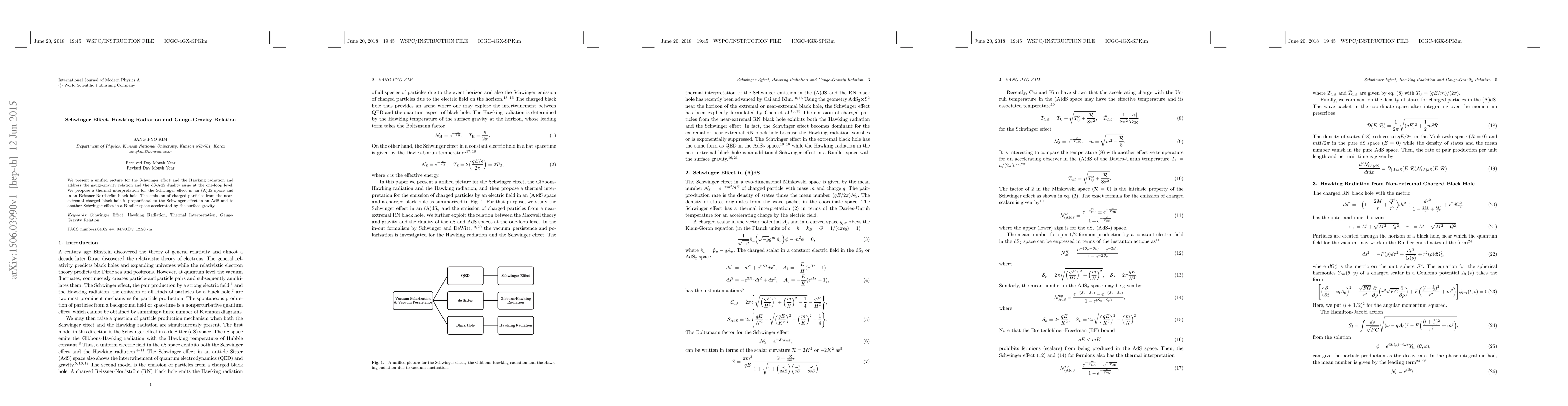 This paper proposes a unified framework linking the Schwinger effect and Hawking radiation, offering a thermal interpretation for both phenomena in (A)dS space and Reissner-Nordström black holes, and explores the gauge-gravity relation, particularly addressing the dS-AdS duality at the one-loop level. It connects particle emission from near-extremal black holes to Schwinger effects in AdS and Rindler spaces.