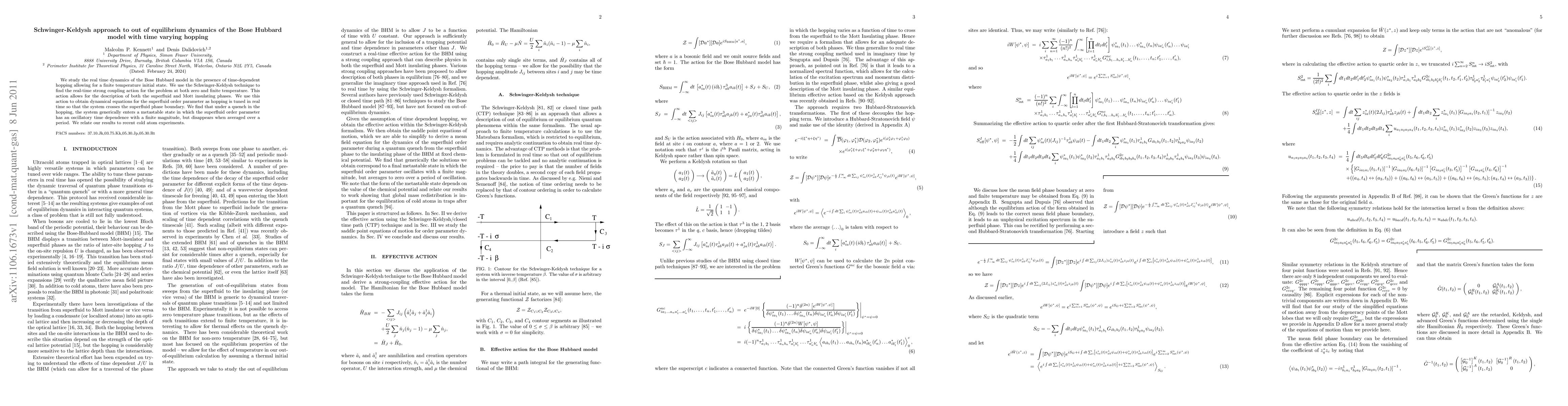 We study the real time dynamics of the Bose Hubbard model in the presence of time-dependent hopping allowing for a finite temperature initial state. We use the Schwinger-Keldysh technique to find the real-time strong coupling action for the problem at both zero and finite temperature. This action allows for the description of both the superfluid and Mott insulating phases. We use this action to obtain dynamical equations for the superfluid order parameter as hopping is tuned in real time so that the system crosses the superfluid phase boundary. We find that under a quench in the hopping, the system generically enters a metastable state in which the superfluid order parameter has an oscillatory time dependence with a finite magnitude, but disappears when averaged over a period. We relate our results to recent cold atom experiments.