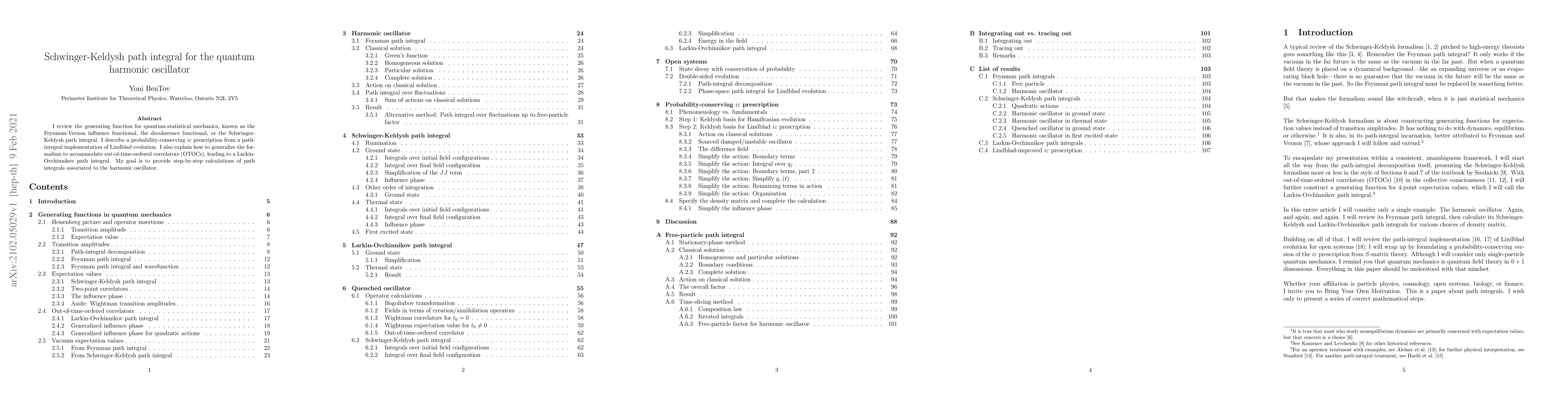 I review the generating function for quantum-statistical mechanics, known as the Feynman-Vernon influence functional, the decoherence functional, or the Schwinger-Keldysh path integral. I describe a probability-conserving $i\varepsilon$ prescription from a path-integral implementation of Lindblad evolution. I also explain how to generalize the formalism to accommodate out-of-time-ordered correlators (OTOCs), leading to a Larkin-Ovchinnikov path integral. My goal is to provide step-by-step calculations of path integrals associated to the harmonic oscillator.