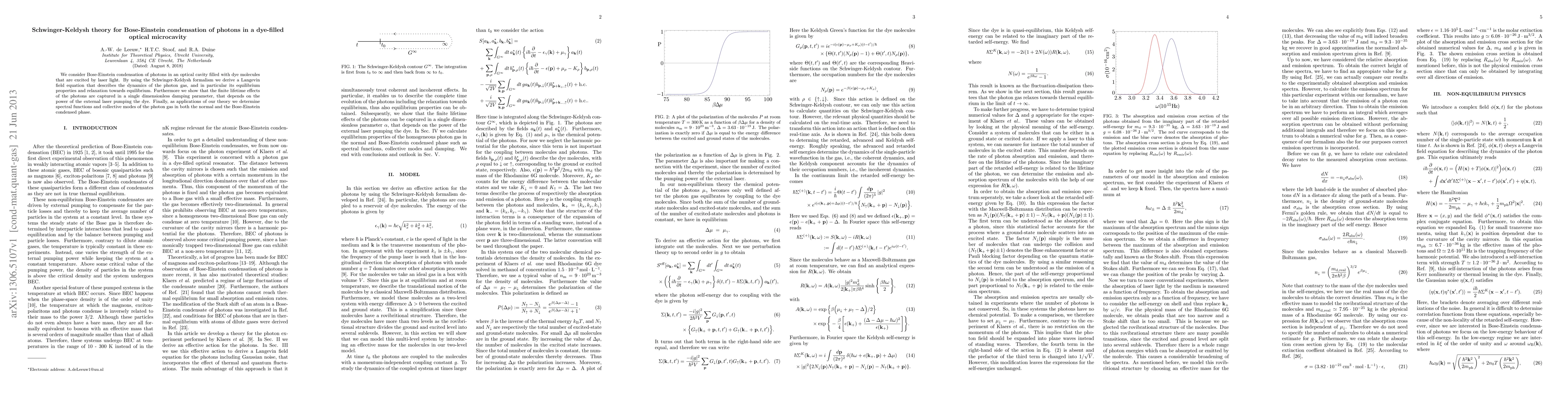 This paper uses Schwinger-Keldysh theory to study photon Bose-Einstein condensation in an optical cavity filled with dye molecules. It derives a Langevin field equation that captures the dynamics of the photon gas and its equilibrium properties.