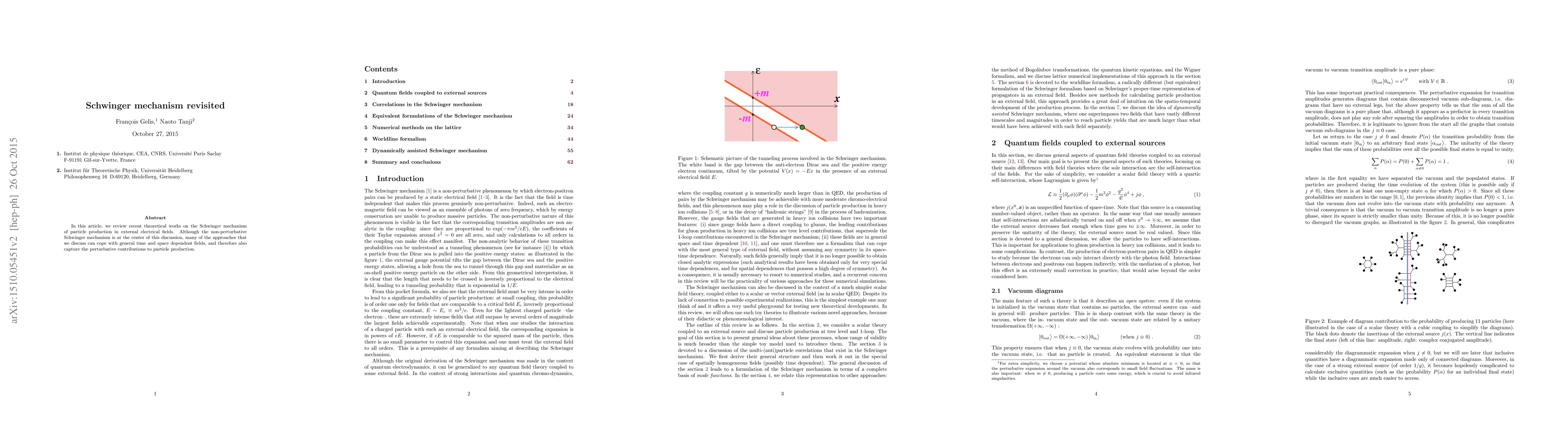 Researchers revisited the Schwinger mechanism, a process where particles are created in external electrical fields, exploring both non-perturbative and perturbative contributions to particle production.