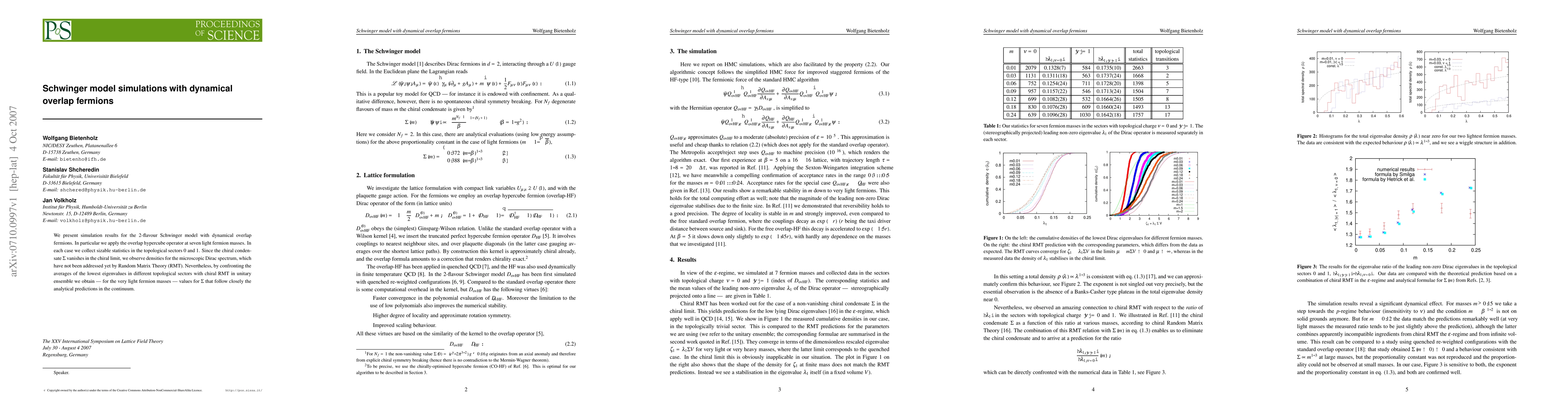 This study simulates the 2-flavour Schwinger model using dynamical overlap fermions, analyzing the microscopic Dirac spectrum in topological sectors. Results show that, despite the chiral condensate vanishing, the lowest eigenvalue averages align closely with predictions from chiral Random Matrix Theory, especially for very light fermion masses.